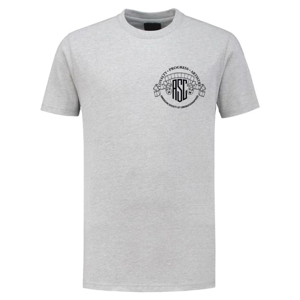 Stay classy with the Historic 1922 American Cinematographer magazine cover â designed by Lewis Physioc, ASC. The well-known cover slogan, âGive Us A Place to Stand and We Will Film the Universeâ also appears on the design. The 1922 AC Cover is prominently featured on the back of the Tee with the American Society of Cinematographerâs logo on the front.